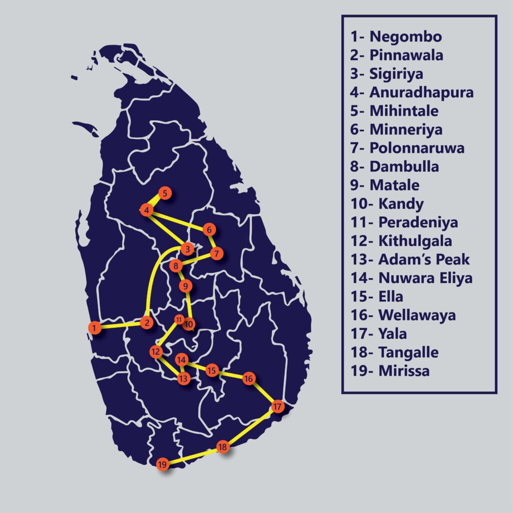 Heritage Tour Immerse yourself in the timeless wonders of Sri Lanka’s heritage sites, tracing the footsteps of ancient civilizations. Adventure Tour Type Sightseeing Days 10 Service Pick up & Drop Tour PlanYour Itinerary, Tailored for Discovery day 1 Airport – NegomboPick up at Air PortNegombo city tourNegambo Lagoon tourFish marketStay night at Negombo hotel day 2 Negombo – Pinnawala – SigiriyaPinnawala Elephant orphanageElephant rideDambulla cave templeHerbal and aurvedic massageVillage tourStay night at Sigiriya hotel day 3 Sigiriya – Anuradhapura – MihintaleSigiriya Lions RockAnuradhapura ancient cityMihinthale TempleStay night day 4 Anuradhapura – Minneriya – PolonnaruwaPolonnaruwa Ancient cityMinneriya National parkStay night at Polonnaruwa hotel day 5 Polonnaruwa – Dambulla – Matale – KandyTraditional Wood carvingNalanda Gedige templeSpice and Herbal gardenAluviharaya templeMatale Hindu templeKandy Cultural dance at eveningStay night at Kandy hotel day 6 Kandy – Peradeniya – Kithulgala – Adam’s PeakKandy Tooth Relic templeGem museumSightseeing Kandy city and lakePeradeniya Botanical GardenKithulgala white water raftingMaskeliya hotelMidnight 2.30 AM start climbing Adam’s peakWatch Morning Sunrise & come downStay night at Maskeliya hotel day 7 Adam’s Peak – Nuwara EliyaDevon Water fallSt. Clair Water fallTea plantationTea factorySightseeing Nuwara Eliya cityStay night at Nuwara Eliya hotel day 8 Nuwara Eliya – EllaTrain tripSightseeing Ella cityLittle Adam’s peakNine arch bridgeStay night at Ella hotel day 9 Ella – Wellawaya – YalaRawana fallsSecret waterfallBuduruwagala rock carvingYala Safari – morning or eveningStay night at Yala hotel day 10 Yala- Tangalle – MirissaHummanaya Blow HoleHirikatiya BeachWawurukannala TempleDewundara Kight HouseMatara Dutch FortCoconut Tree Hill MirissaMirissa hotel Book Your Tour now Day Tour Packages Kandy City Tour View package Anuradhapura Day Tour View package Polonnaruwa Day Tour View package Sigirya Day Tour View package Nuwara Eliya Day Tour View package Waterfall Lovers Day Tour View package